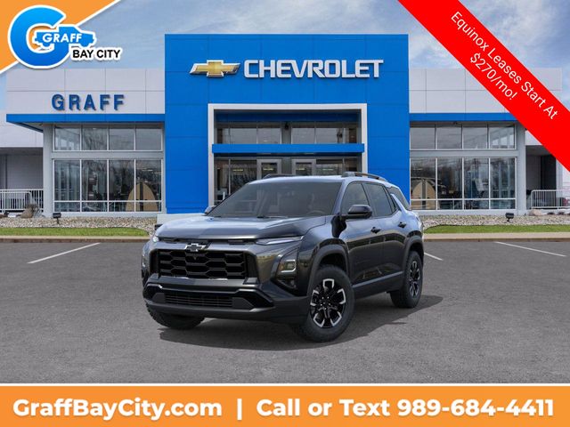 Mosaic Black Metallic 2026 Chevrolet Equinox ACTIV 1.5L DOHC CVT FWDOur team is dedicated to getting you the best price and all the information you need to make an informed decision! Any vehicles showing in our inventory are on our lot, not at another store miles away. We believe in transparent pricing and we do not charge dealer fees or add any additional surprise fees to our prices. 26/28 City/Highway MPGCall Graff today at 989-684-4411 to confirm availability! Note: Internet prices are not compatible with other offers unless specified by dealer.