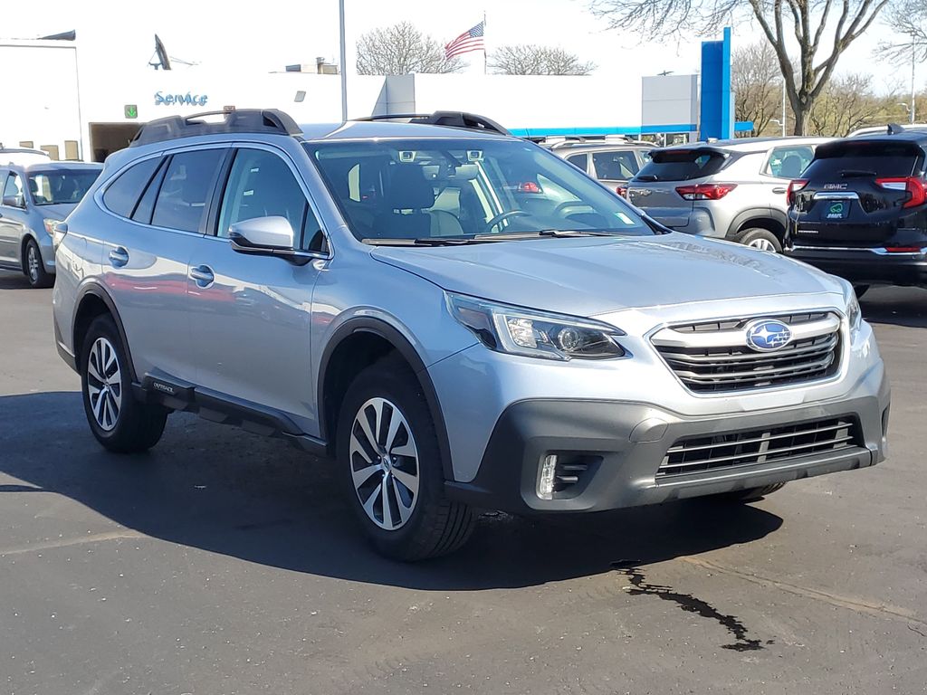 Discover the ultimate blend of capability and refinement with this 2021 Subaru Outback Premium. Boasting a spacious, well-appointed interior and a robust 2.5L 4-cylinder DOHC engine paired with Subaru's renowned Symmetrical All-Wheel Drive system, this Outback is ready to take you on any adventure with confidence and style.- Auto-Dimming Mirror with Compass and HomeLink- Rear Seat Back Protector- All-Weather Floor Liners- Rear Bumper Cover- Blind Spot Detection with Rear Cross-Traffic Alert, Keyless Access with Push-Button StartThe Outback Premium's impressive array of features is designed to enhance your driving experience and provide unparalleled versatility. Enjoy the convenience of the Hands-Free Power Rear Gate, the comfort of the heated front seats, and the seamless connectivity of the STARLINK 11.6-inch Multimedia Plus System with Apple CarPlay and Android Auto integration.Boasting an EPA-estimated 26 city/33 highway mpg, this Outback Premium delivers exceptional fuel efficiency without sacrificing its off-road capabilities. The 17-inch black aluminum alloy wheels, roof rack, and sporty rear spoiler further accentuate the Outback's rugged yet refined aesthetic.Safety is paramount, and this Outback Premium is equipped with a comprehensive suite of advanced driver-assistance technologies, including Blind Spot Detection, Rear Cross-Traffic Alert, and Subaru's renowned EyeSight Driver Assist Technology. You can drive with confidence, knowing that you and your loved ones are well-protected.Whether you're tackling the daily commute, embarking on a weekend adventure, or transporting your family in comfort and style, this 2021 Subaru Outback Premium is the perfect companion. Experience the perfect blend of capability, technology, and sophistication – visit our showroom today and let us demonstrate why the Outback is the ultimate choice for your next vehicle.