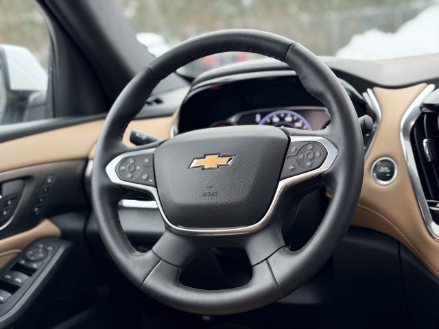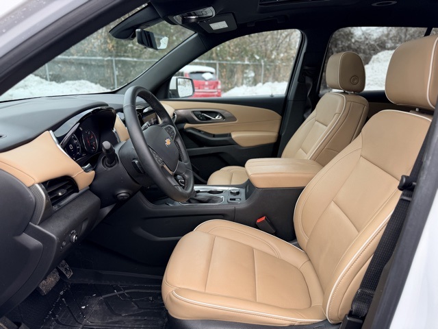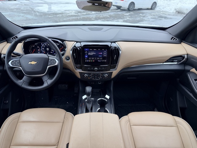 backup camera, bluetooth, Traverse Premier, 4D Sport Utility, 3.6L V6 SIDI VVT, 9-Speed Automatic, AWD, Iridescent Pearl Tricoat, Jet Black/Maple Sugar Leather, Dual SkyScape 2-Panel Power Sunroof, Exterior Parking Camera Rear, Heated 2nd Row Outboard Position Seats, Heated Driver & Front Passenger Seats, Navigation System, Power Liftgate, Preferred Equipment Group 1LZ, Ventilated Driver & Front Passenger Seats, Wheels: 20 Metallic Machined-Face Aluminum.Odometer is 19670 miles below market average!AWD 9-Speed Automatic 3.6L V6 SIDI VVT